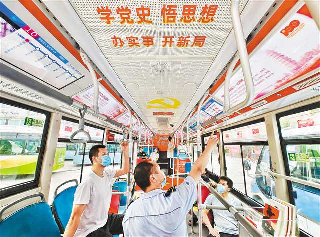 作為黨史學(xué)習(xí)教育宣傳的移動平臺,該路公交車配有黨史電子圖書館、建黨100周年祝福留言板、黨史書籍讀書角等,駕駛員擔(dān)任黨史宣講員,為乘客簡要介紹沿途紅色景點(diǎn)、革命故事等。目前,“黨史進(jìn)車廂”已在我市14條公交線路的58輛公交車上線,公交集團(tuán)還將陸續(xù)推出“青年奮進(jìn)號”等主題車廂,讓市民對黨史有更多了解。