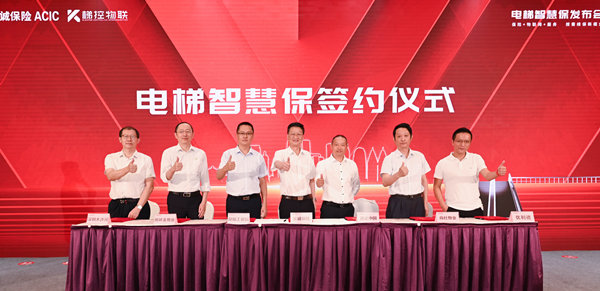 “電梯智慧保”簽約儀式。安誠(chéng)保險(xiǎn)供圖