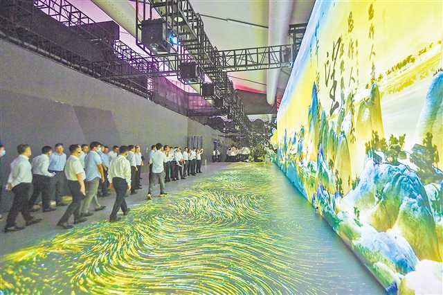 館內(nèi),“序廳”“自然山水”“歷史文化名城”“總體規(guī)劃”“高質(zhì)量發(fā)展”“高品質(zhì)生活”“內(nèi)陸開(kāi)放高地”“山清水秀美麗之地”8個(gè)主題展區(qū),讓領(lǐng)導(dǎo)干部們駐足停留。虛擬的燙火鍋場(chǎng)景,留住鄉(xiāng)愁的吊腳樓造型……老重慶的生活在這里被生動(dòng)復(fù)原。