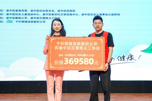 “孩子們是世界的未來,眼睛是孩子們看世界的窗戶,關(guān)注兒童青少年成長,守護視力健康,是我們的責任?!眴觾x式現(xiàn)場,愛心企業(yè)千葉眼鏡連鎖股份公司向重慶市渝中區(qū)紅櫻桃義工協(xié)會捐贈了500副眼鏡,4000套學習文具禮包,同時十位專業(yè)驗光師獲聘成為愛心講師,助力兒童青少年眼健康事業(yè)蓬勃發(fā)展。