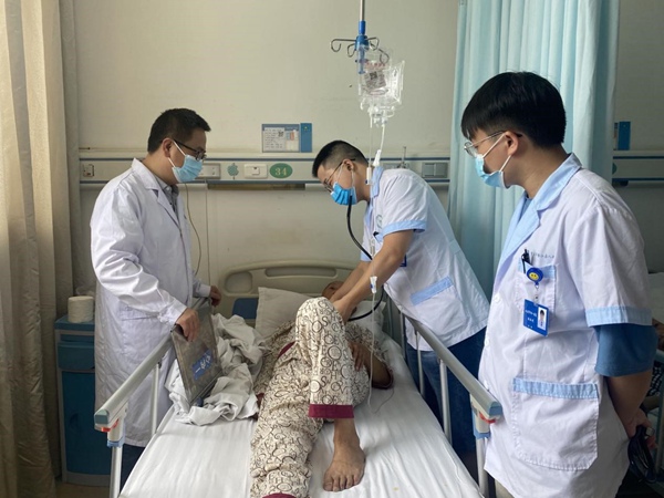 為住院患者檢查身體狀況。墊江縣人民醫(yī)院供圖