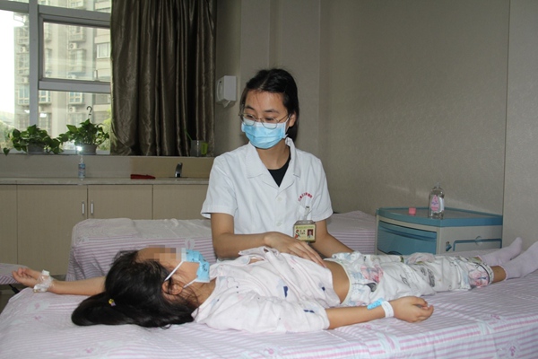 走進(jìn)小兒推拿中心,六張床位一字排開,在其中三張床位上,三個(gè)年齡不同的孩子正在接受推拿治療。