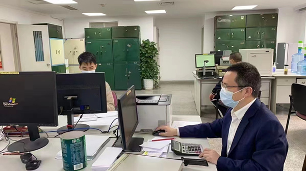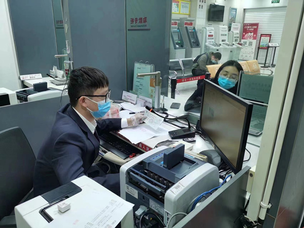 九龍坡支行國(guó)庫(kù)工作人員疫情期間駐守支行,高效配合完成國(guó)庫(kù)預(yù)算收入等工作。工行重慶市分行供圖