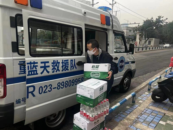 彈子石支行向防疫人員捐贈(zèng)防疫物資。工行重慶市分行供圖