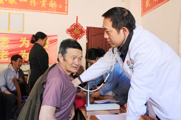 鄭云章到福利院義診(資料圖)。開州區(qū)人民醫(yī)院供圖