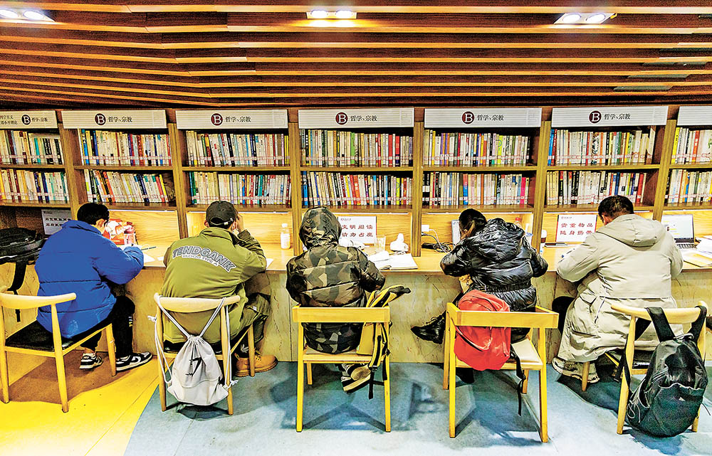 2月1日,重慶圖書館24小時城市書房,讀者正在認(rèn)真學(xué)習(xí)。