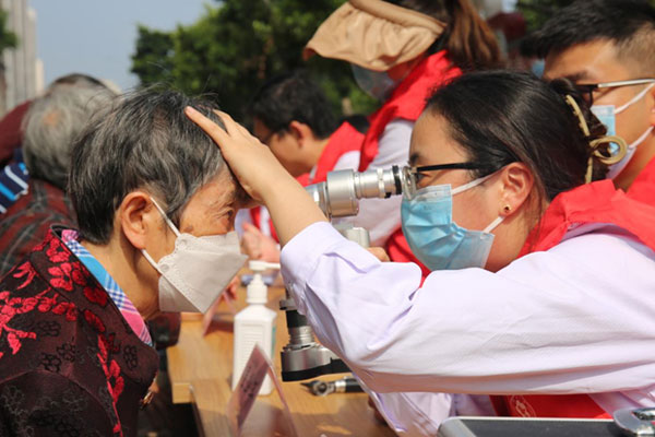 為居民檢查眼部健康情況。王裕慶攝