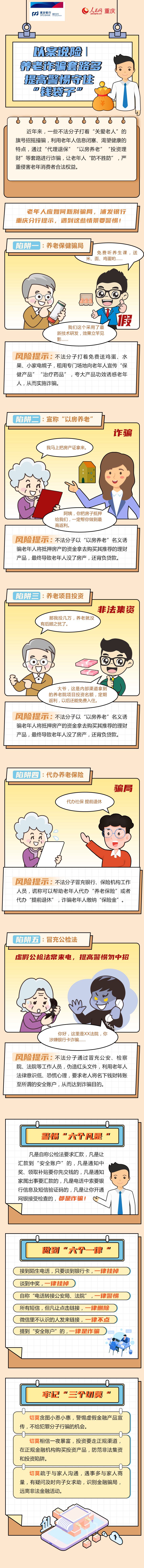 近年來,一些不法分子打著“關(guān)愛老人”的旗號(hào)招搖撞騙,利用老年人信息閉塞、渴望健康的特點(diǎn),通過“代理退?!薄耙苑筐B(yǎng)老”“投資理財(cái)”等套路進(jìn)行詐騙,讓老年人防不勝防,嚴(yán)重侵害老年消費(fèi)者合法權(quán)益。浦發(fā)銀行重慶分行提醒,老年人遇到這些情景要警惕,切實(shí)守住“錢袋子”。(李金)