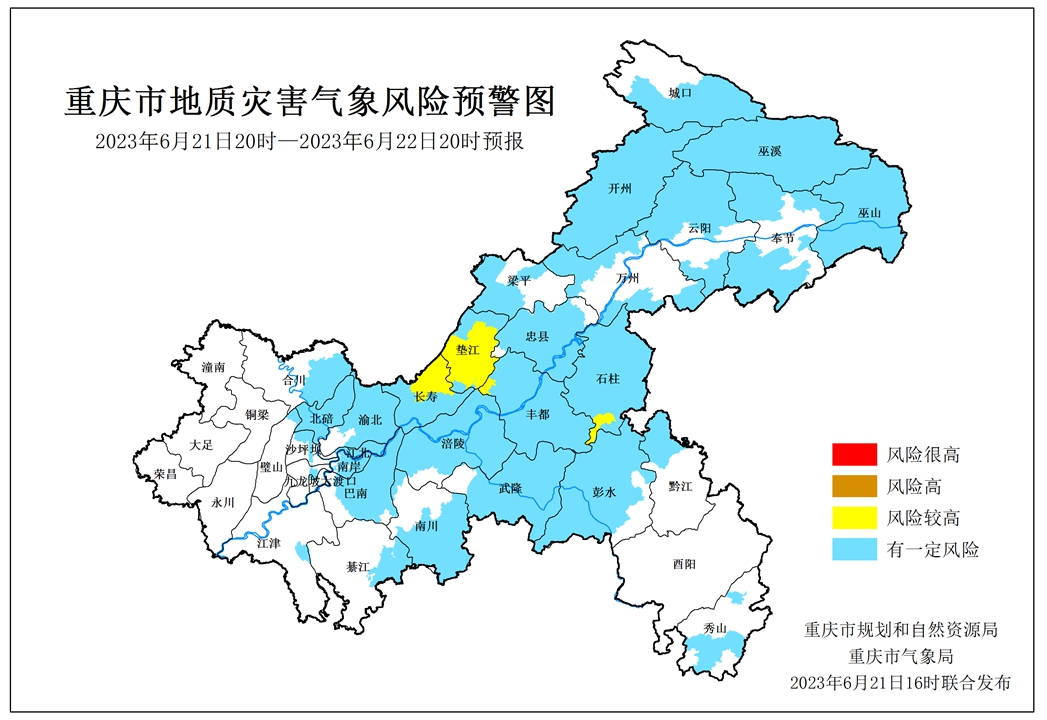6月21日16時,重慶市規(guī)劃和自然資源局、重慶市氣象局聯(lián)合發(fā)布全市地質(zhì)災(zāi)害氣象風險預(yù)警。