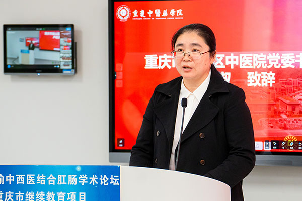 重慶市璧山區(qū)中醫(yī)院黨委書記盧廷淑在開幕式上介紹了醫(yī)院發(fā)展情況。她表示,肛腸疾病因其發(fā)病率高、嚴(yán)重影響人們的生活質(zhì)量而越來越受到重視,醫(yī)院肛腸科充分發(fā)揮中醫(yī)治療的優(yōu)勢,普遍開展中醫(yī)技術(shù),為璧山肛腸疾病患者提供了高質(zhì)量、高水準(zhǔn)、高效率的診療服務(wù)。