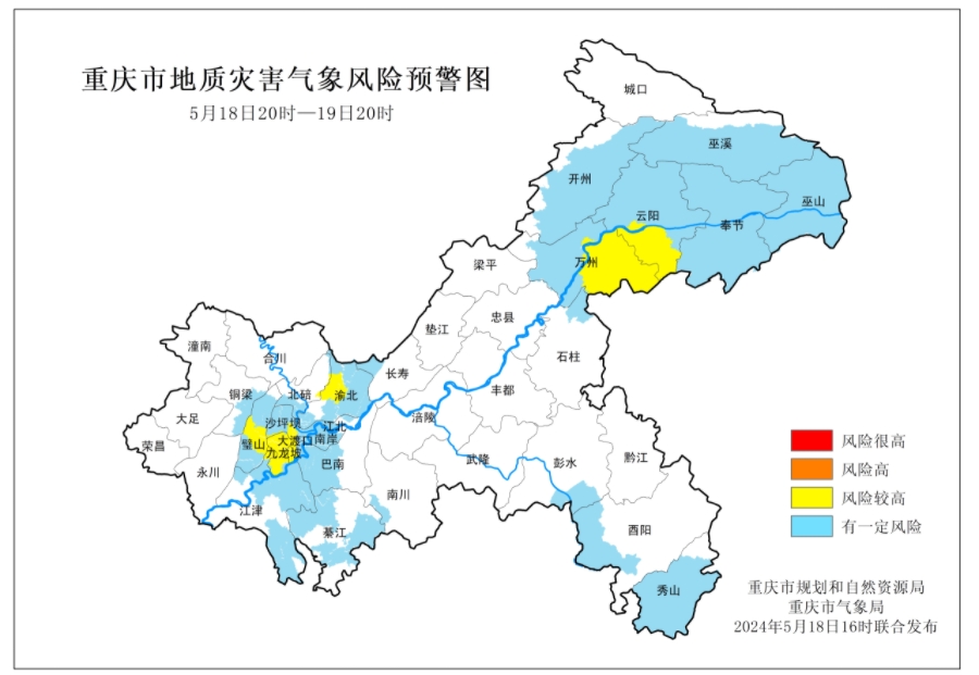 5月18日16時,重慶市規(guī)劃和自然資源局、重慶市氣象局聯(lián)合發(fā)布全市地質(zhì)災(zāi)害氣象風(fēng)險預(yù)警。