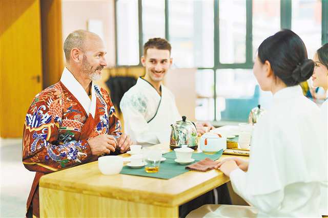 6月26日,重慶五一職業(yè)技師學(xué)院,參加第二屆“一帶一路”國際技能大賽的嘉賓在體驗中國茶文化。記者 李雨恒 攝/視覺重慶