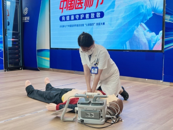 為進一步錘煉提升醫(yī)務(wù)人員對危急重癥患者的應(yīng)急處置能力,有效保障患者生命安全,醫(yī)院組織醫(yī)務(wù)人員開展醫(yī)師節(jié)系列活動之心肺復蘇技能競賽,醫(yī)院共5個組參與。比賽現(xiàn)場,參賽選手們從現(xiàn)場環(huán)境評估、患者傷情判斷、啟動急救程序,到胸外按壓、開放氣道、輔助呼吸、AED使用等環(huán)節(jié),動作規(guī)范準確,再現(xiàn)急救過程中爭分奪秒的場景,充分展現(xiàn)了良好的急救能力和職業(yè)精神面貌。