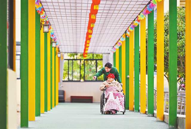 二月十七日,墊江縣墊康里頤年公寓,新建的風(fēng)雨長廊讓老人在下雨天也能感受到戶外的美好。