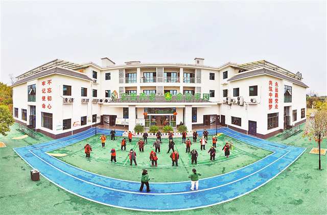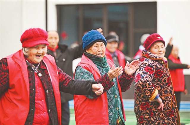 2月17日,澄溪鎮(zhèn)敬老院,老人們在操場上運動。