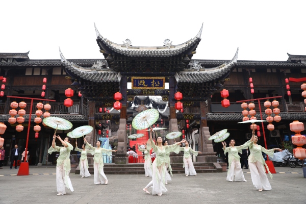 此次文化節(jié)創(chuàng)新“文化+旅游+消費”模式,推出“孝親劇本殺”“長江取水儀式”“漢服快閃巡游”等特色活動。游客可化身NPC參與劇情互動,在青石板街巷中探尋孝親故事,亦可駐足非遺市集,體驗糖畫、油紙傘制作等技藝,感受傳統(tǒng)文化的現(xiàn)代表達。同時,川劇變臉、柔術滾燈、魔術《化蝶》等非遺表演,在玉皇觀舞臺輪番上演,讓游客們領略傳統(tǒng)技藝的無限魅力。