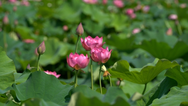 “當(dāng)前百余種荷花已初綻芳容,一周后將迎來全域盛放的‘千荷爭艷’盛景?!苯d介紹,基地有近2000畝的荷花種植面積,一共培育有1800多個(gè)品種的荷花,目前上百個(gè)品種的荷花已經(jīng)開放,再過一周左右,大足區(qū)各處的荷花將全面進(jìn)入盛花期。(李東、陳柯男)