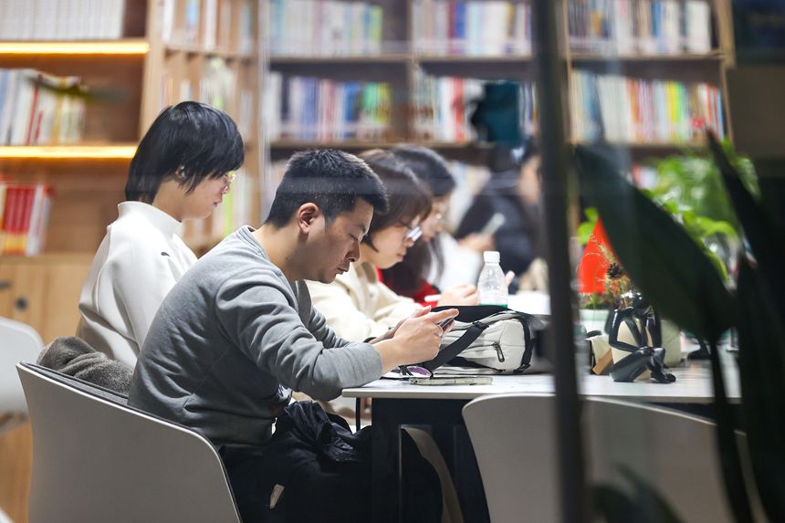11月3日,兩江新區(qū)渝興廣場24小時城市智慧書房,不少市民正在書房內(nèi)閱讀、自習(xí)。記者 尹詩語 攝